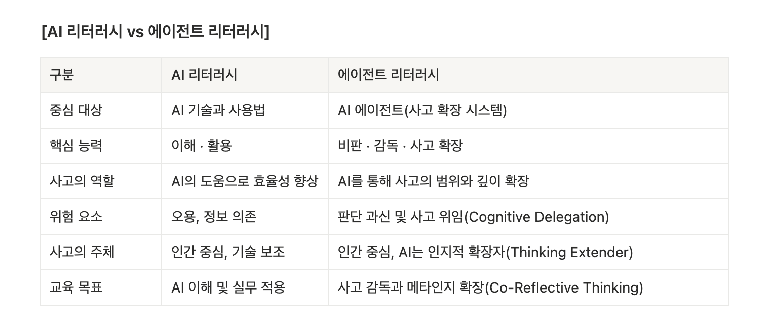โ์์ด์ ํธ ๋ฆฌํฐ๋ฌ์(Agent Literacy)โ๋ ํ ๋จ๊ณ ๋ ๋์๊ฐ AI๋ฅผ ํตํด ์ธ๊ฐ์ ์ฌ๊ณ ๋ฅผ ํ์ฅํ๊ณ , ๊ทธ ๊ณผ์ ์ ํ๊ณ๋ฅผ ๋นํ์ ์ผ๋ก ๊ฐ๋